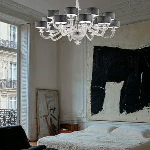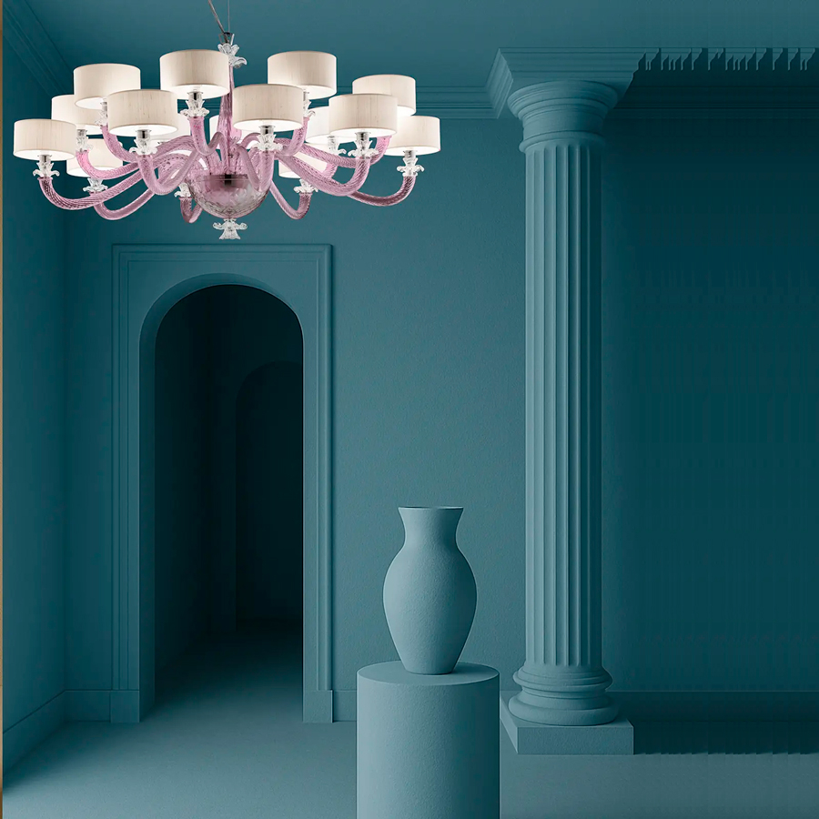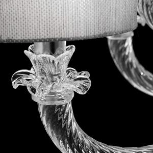 Коллекция подвесных/потолочных люстр Disoris — это элегантный стиль в атмосфере интерьеров. Этот светильник сохраняет все формальное богатство и материал муранского искусства, сделанных  калиброванных пропорциях.Линии мягкие, но при этом структурированные: переплетенные ветви из выдувного стекла с отделкой Torciglion горизонтально расходятся, образуя широкую корону, а выточенный вручную центр удерживает свет с точностью и легкостью.