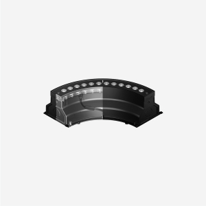 Встраиваемый светильник полукруглой формы , предназначенный для подсветки растений, деревьев, объектов кака в грунте, так и на тротуарах  с асфальтированным покрытием и плиткой. В светильнике используются  монохромные светодиодные источники теплого белого света с широкоугольной оптикой (WF). Монтаж  в пол и тротуар с использованием специального внешнего корпуса. Состоит из корпуса и внешнего корпуса, заказываемых отдельно, имеющих форму четверти круга. Корпус изготовлен из черного высокоэффективного термопластичного материала PPS (полифениленсульфид). Закаленное натриево-кальциевое защитное стекло толщиной 8 мм с индивидуальной черной шелкографией герметизировано силиконом к пластине из нержавеющей стали с самозажимными вставками; блок стекло+пластина крепится к корпусу гайками из нержавеющей стали с силиконовым герметиком посередине  и выдерживает ввес 2000 кг.  Поставляется с высокоточными отражателями «OptiBeam» из металлического термопластичного материала с широкоугольной оптикой. Монохромная версия с электронной схемой 24 В постоянного тока, светодиодами теплого белого света, диммированием Dali с использованием балласта Dali и интерфейсом, заказываемыми отдельно. Нижний узел изделия поставляется в комплекте с разъемом PG9 из пластика, многожильным кабелем длиной 350 мм с устройством защиты от протечек. Разъемы заказываются отдельно. Изделие и внешний корпус скрепляются двумя винтами из нержавеющей стали A2. Все используемые винты изготовлены из нержавеющей стали A2. Полукруговые элементы стыкуются между собой соединительными элементами, которые заказываются отдельно.Оптика широкая- 48 градусов.